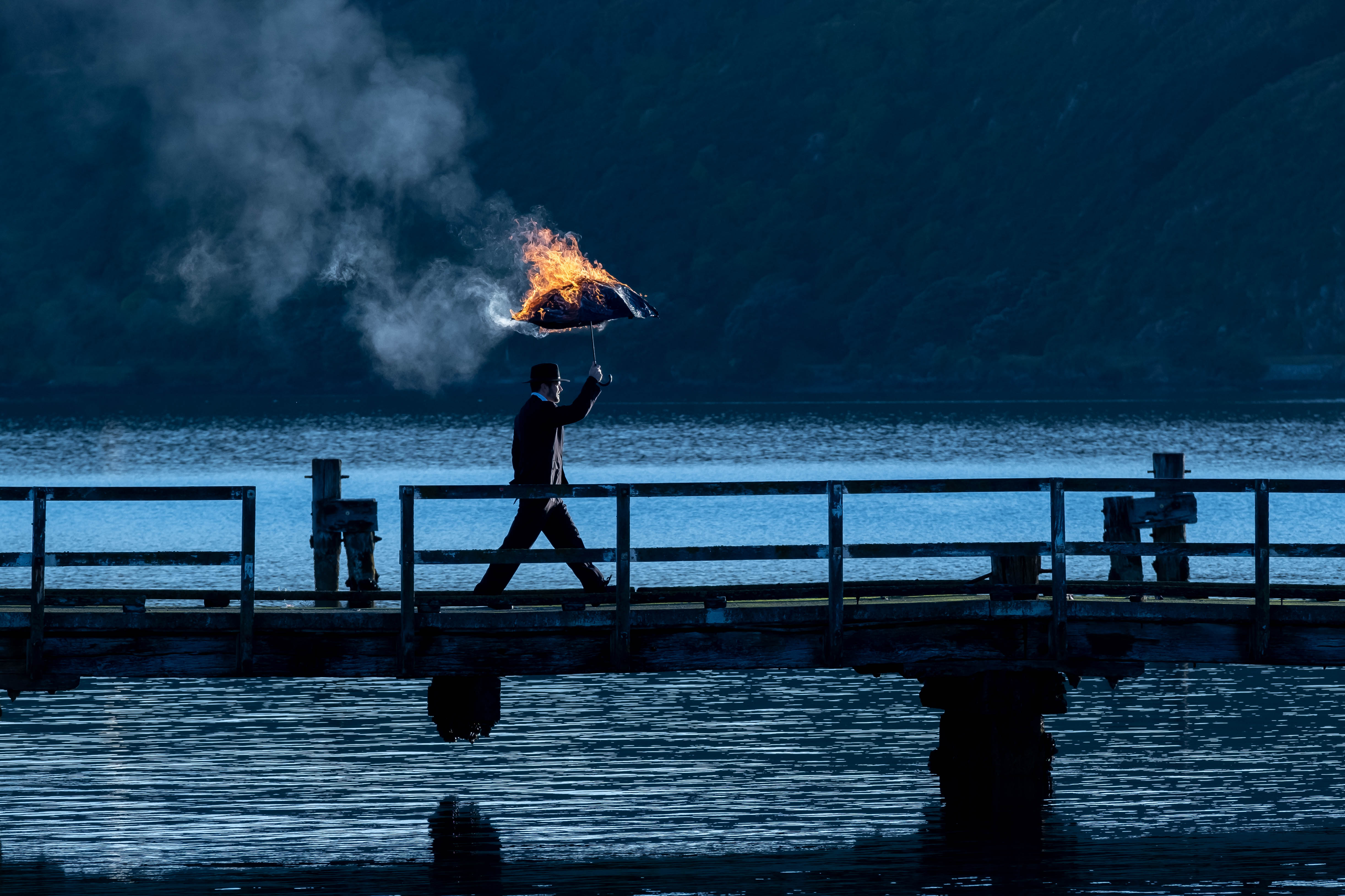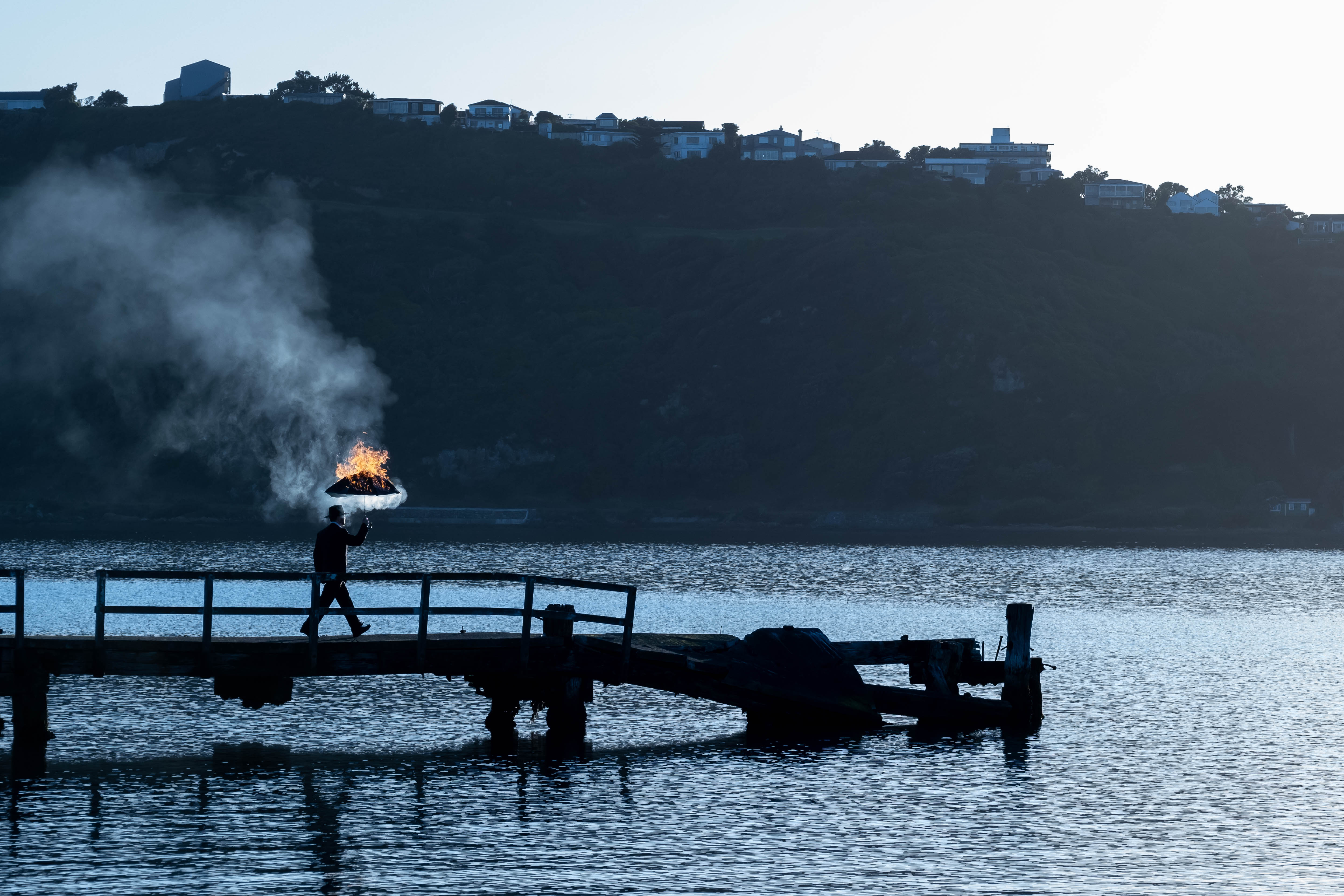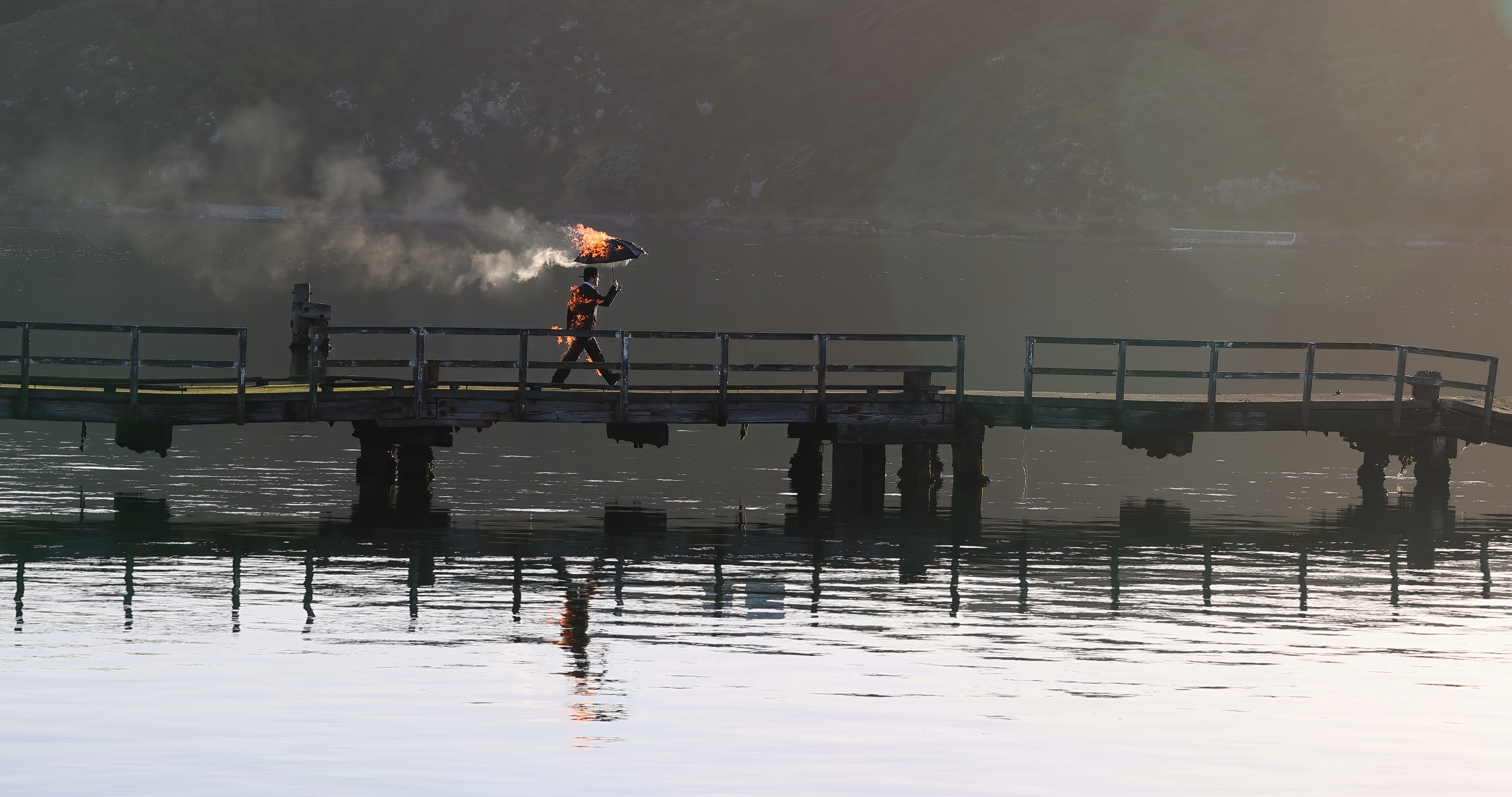 We live in a world that is usual, the umbrella man lives in a mirror world that is unusual.