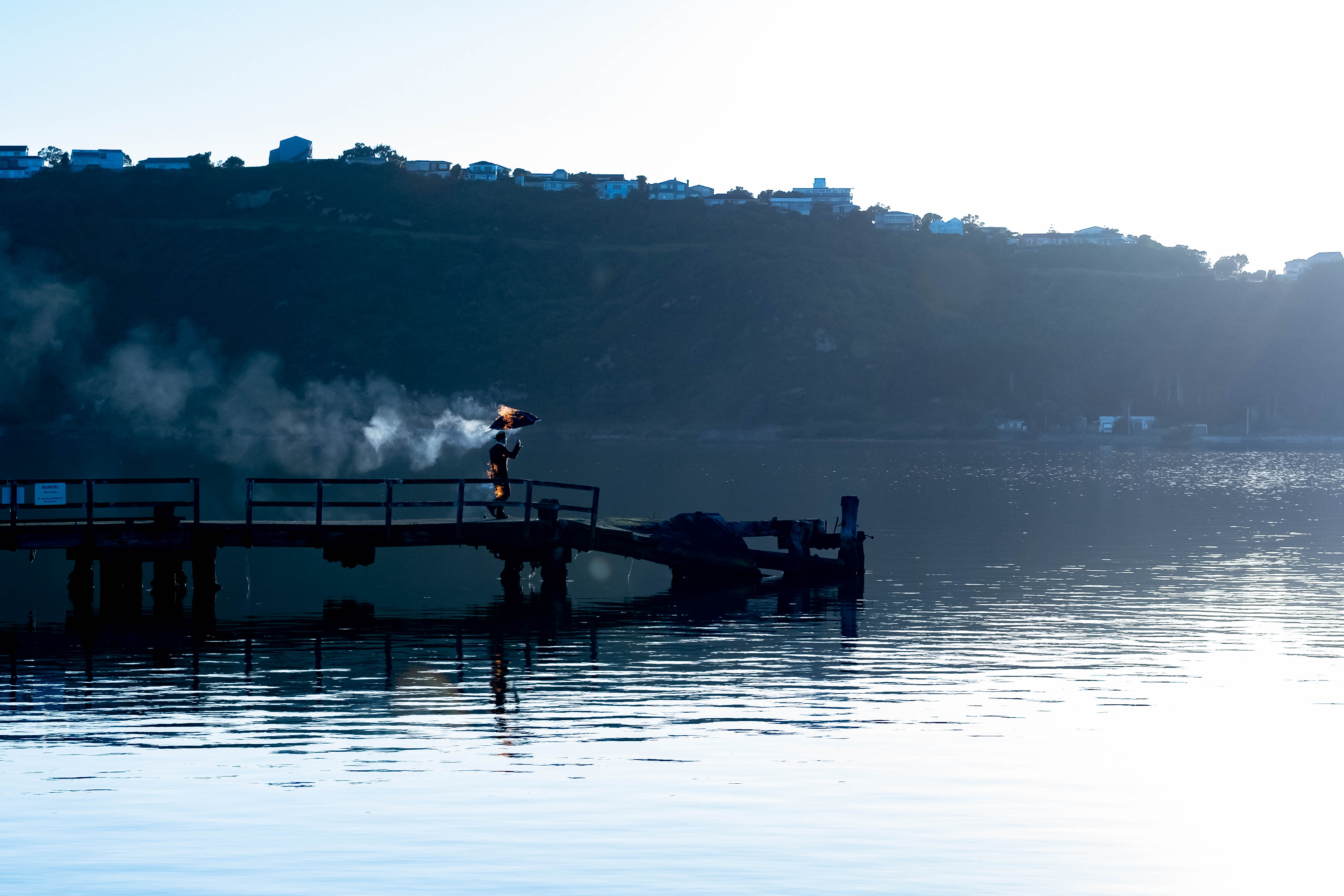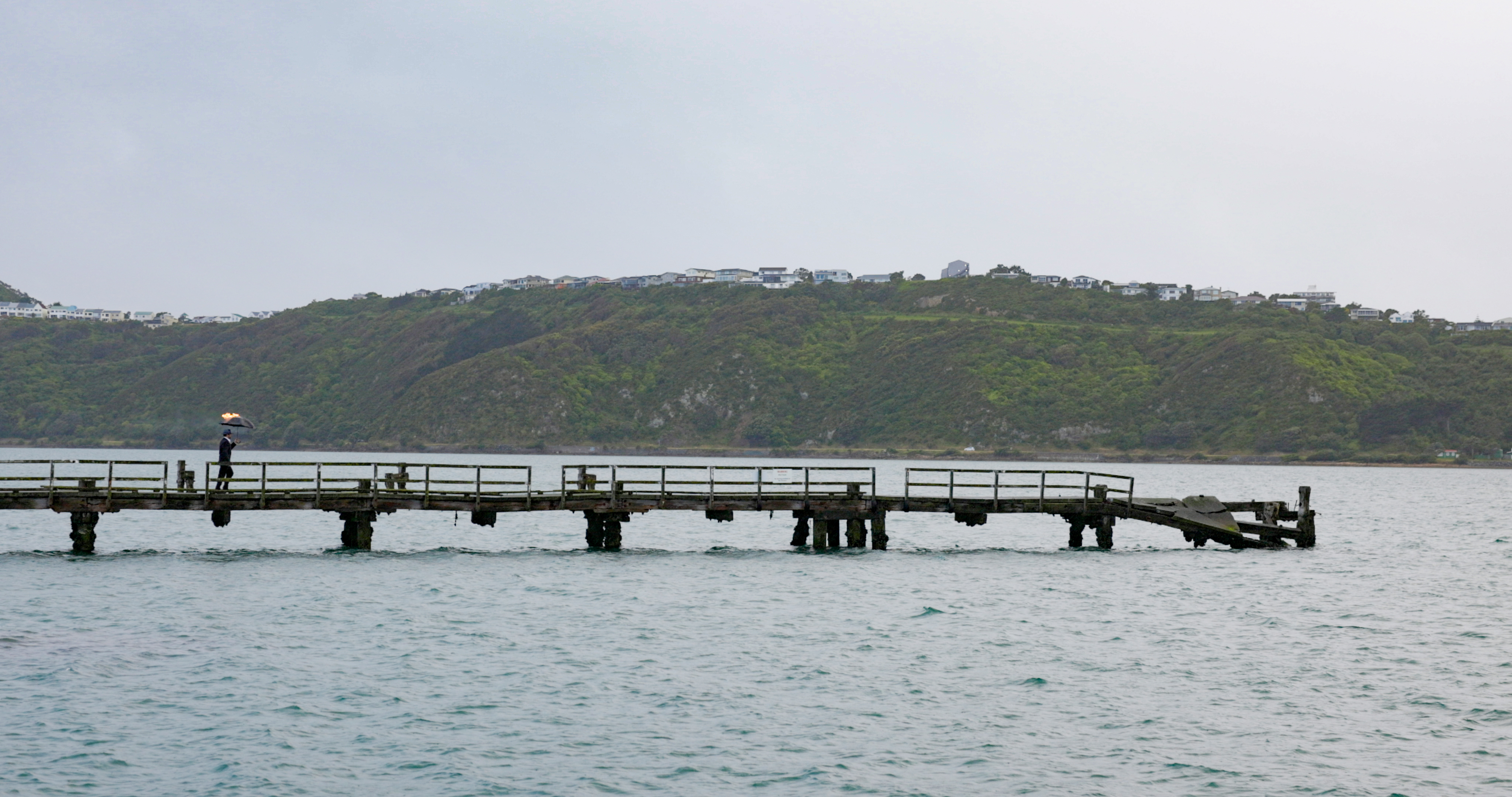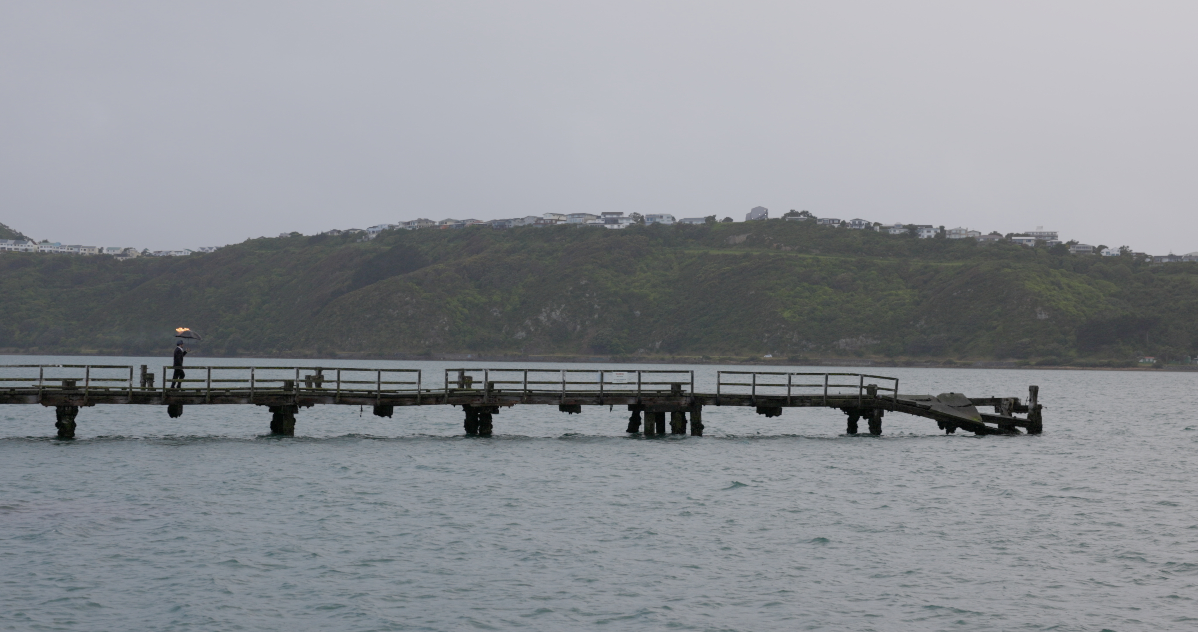 We live in a world that is usual, the umbrella man lives in a mirror world that is unusual.