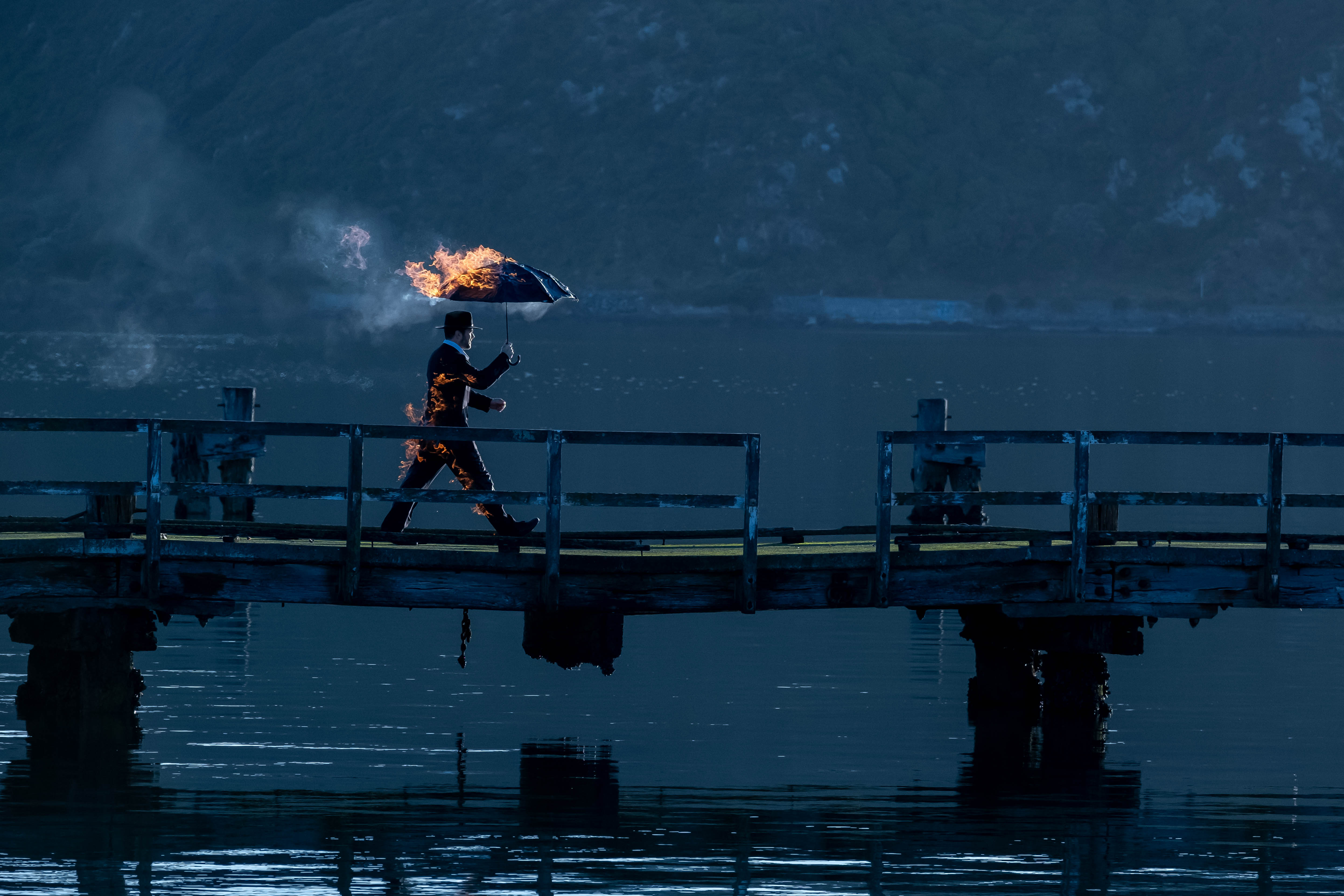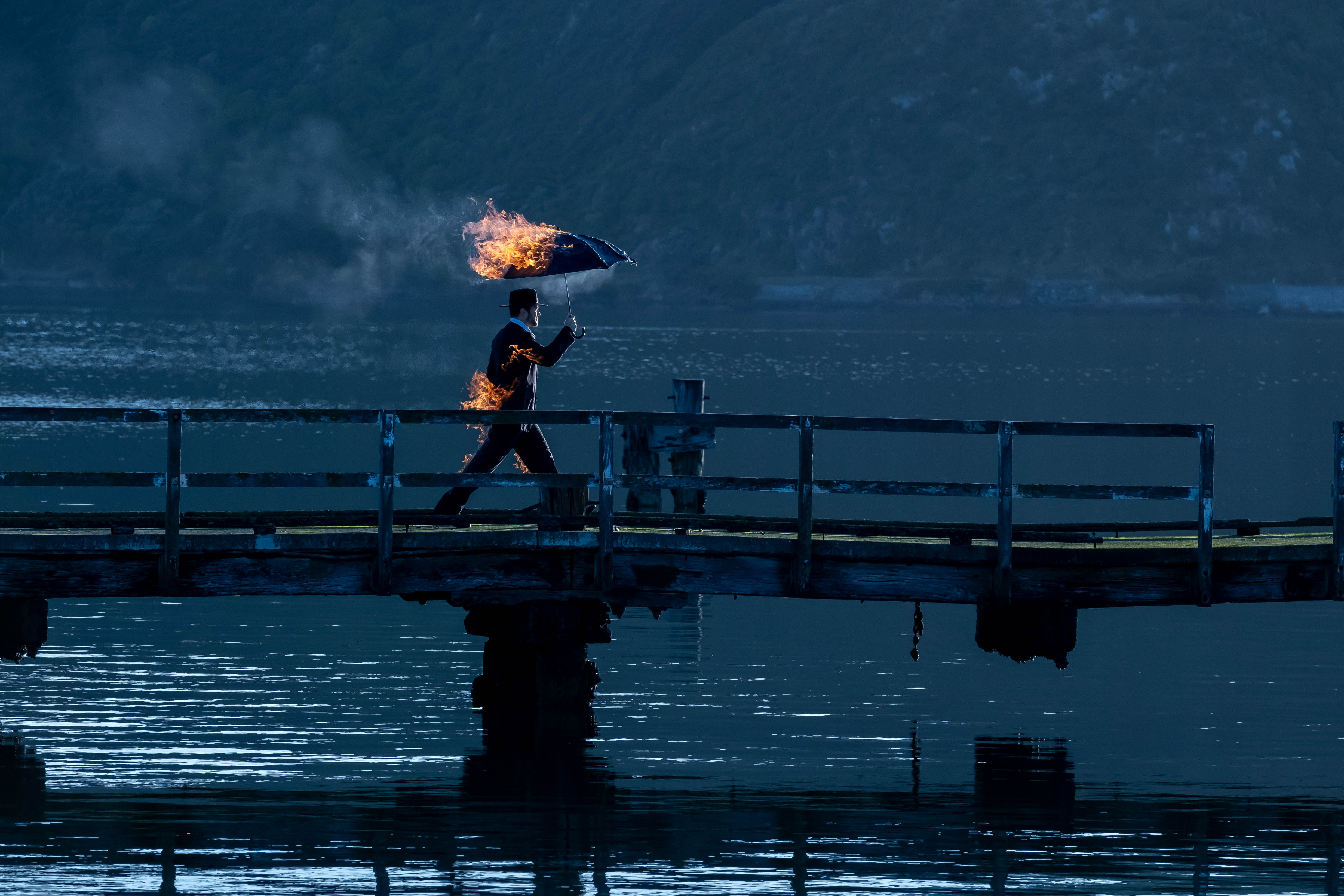 The umbrella man symbolizes a smiliar quantum dimension where everything is really weird.